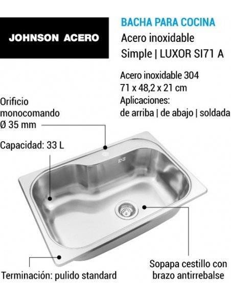 Nuestras bachas de acero inoxidable ofrecen el máximo nivel de higiene, resistencia y durabilidad para cocinas modernas y de uso intensivo. Están fabricadas con acero de alta calidad, altamente resistente a golpes, corrosión, humedad y manchas, lo que garantiza una superficie siempre limpia, segura y fácil de mantener. Su diseño técnico y su terminación precisa permiten una integración perfecta con mesadas de mármol, granito, cuarzo y superficies compactas, brindando no solo funcionalidad sino también una estética profesional y duradera que acompaña el ritmo diario de la cocina
