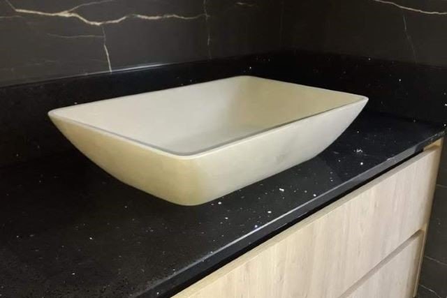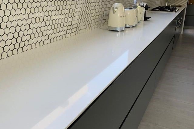 Purastone™ es una superficie apta para mesadas de cocina y baño y para aplicaciones de uso comercial (barras, mostradores, etc).